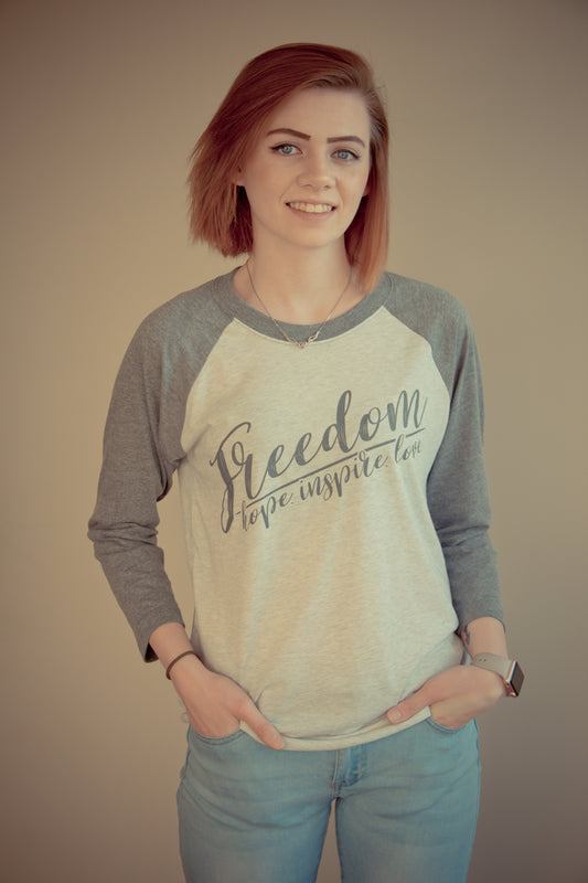 FREEDOM 3/4 Sleeve Baseball Tee - Grey - Unisex
