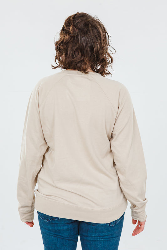 The design our Redeemed collection is inspired by. Featuring the text "Redeemed, Restored, Renewed", reminding us that we are capable of being transformed. The sweatshirt is more fitted through the hips and waist. We suggest sizing up for a looser fit.